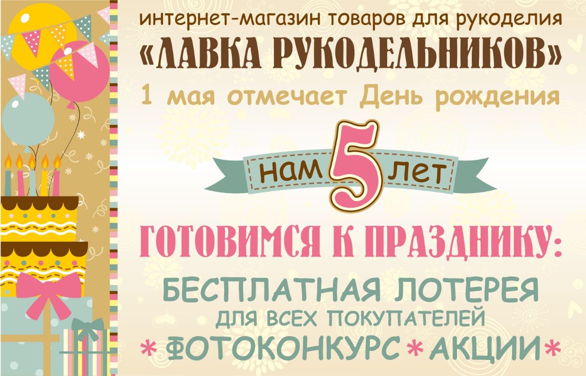 1 мая 2018 года магазин «Лавка Рукодельников» отметит свой первый маленький юбилей 5 лет. Но мы начнем подготовку уже с сегодняшнего дня. И приглашаем вас поучаствовать в событиях, которые надеемся, понравятся вам: