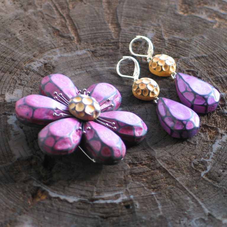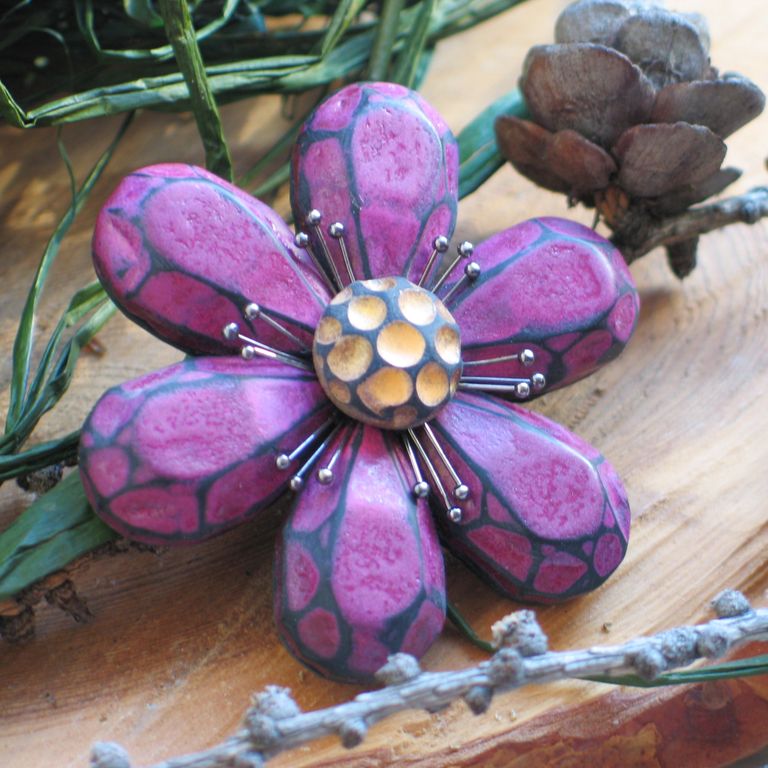 материал: металлическая основа для броши, полимерная глина, низкотемпературная эмаль