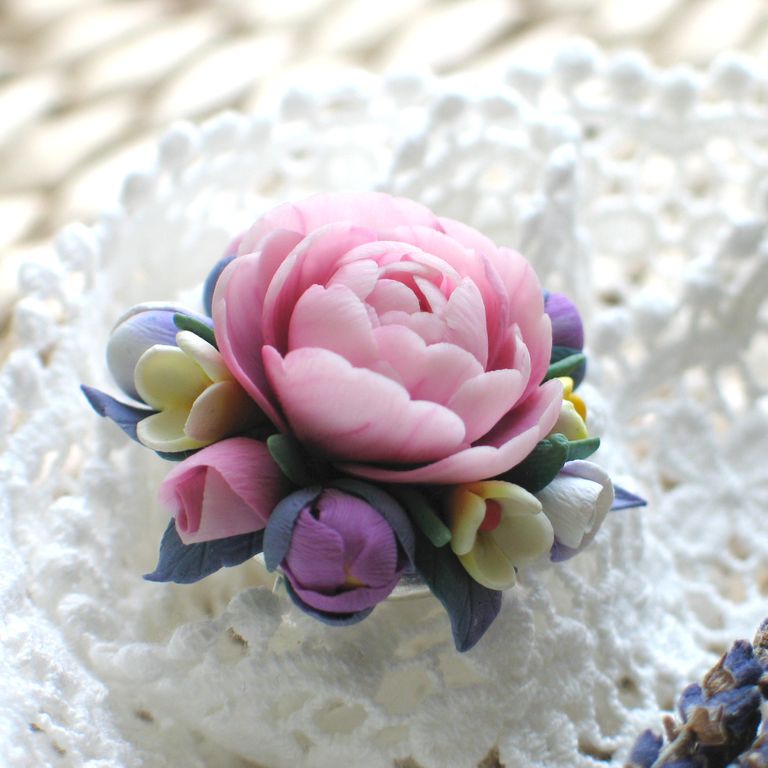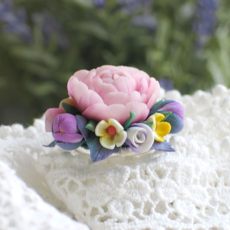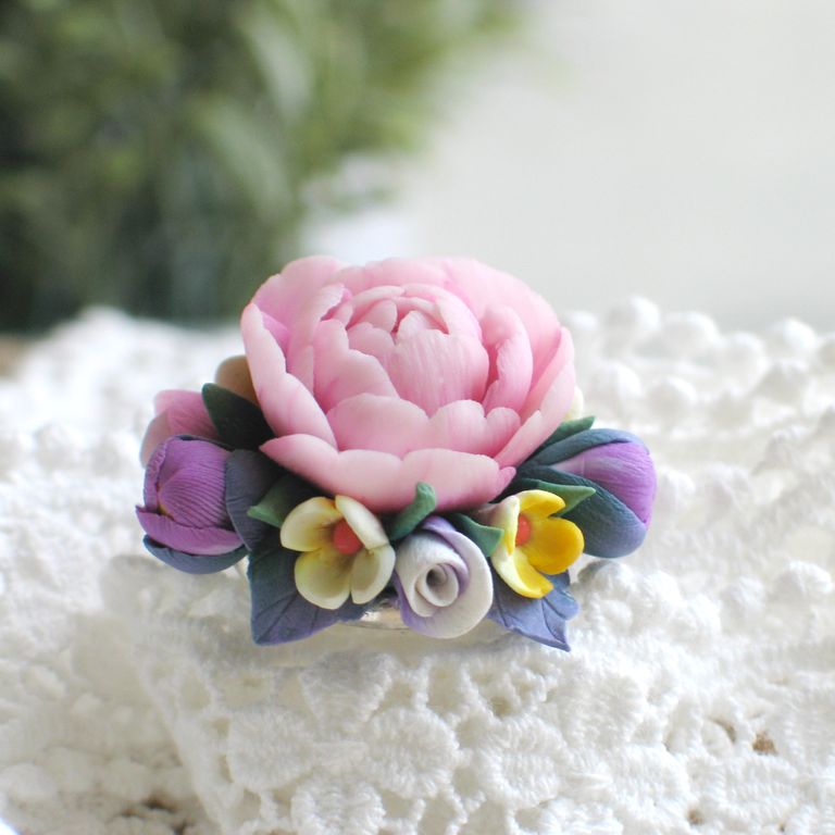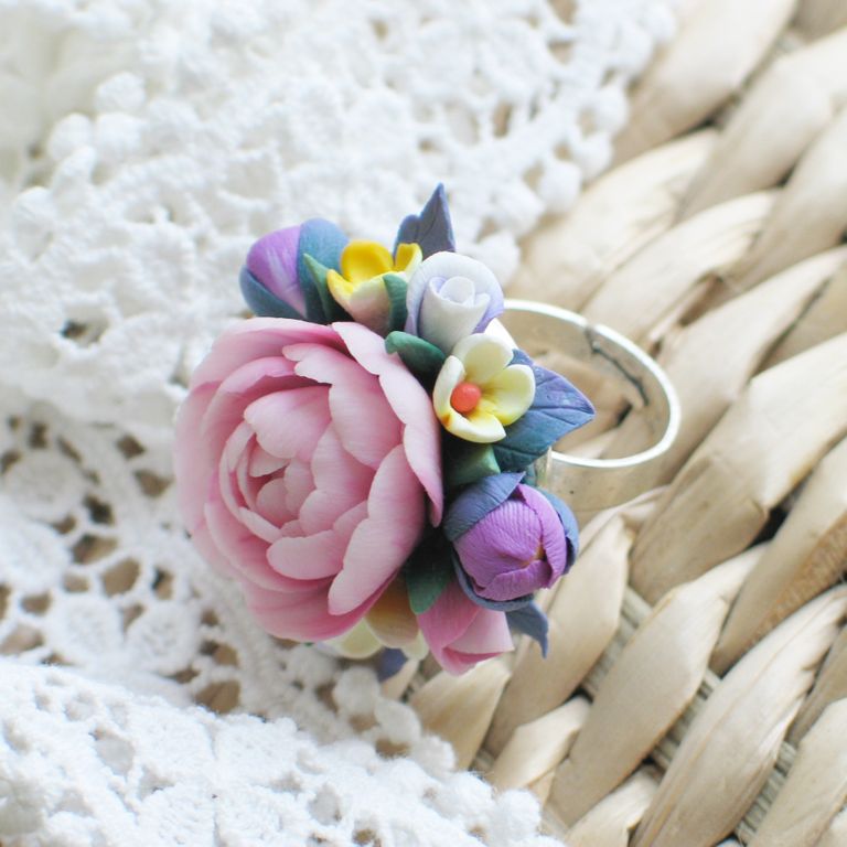 материал: полимерная глина, металлическая основа для кольца