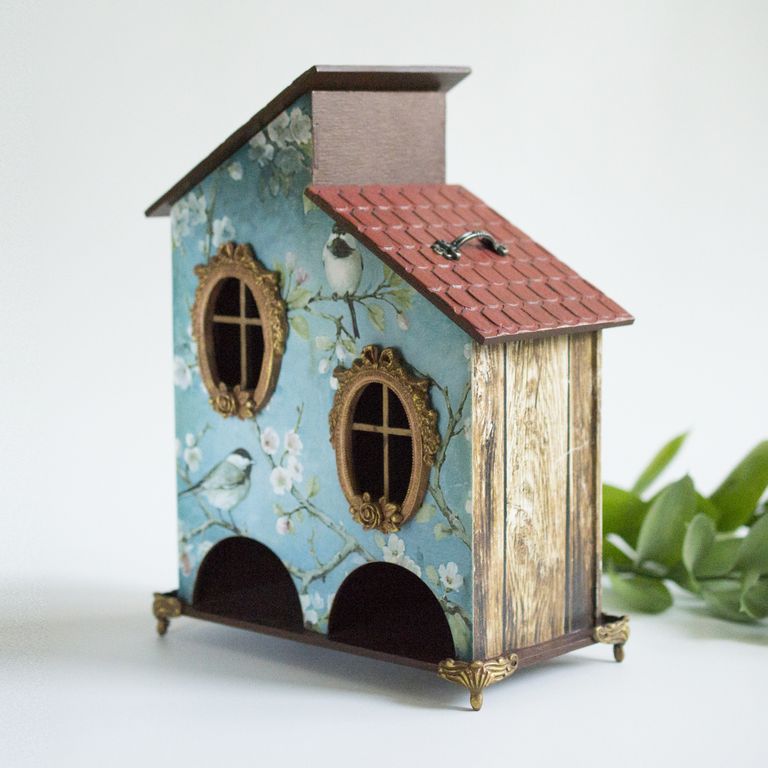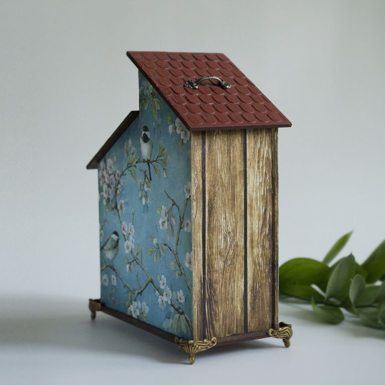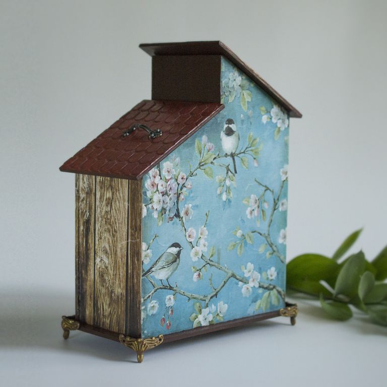 материал декора: бумага для декупажа, полимерная глина, лак, металлическая фурнитура