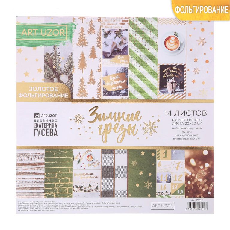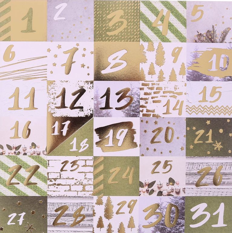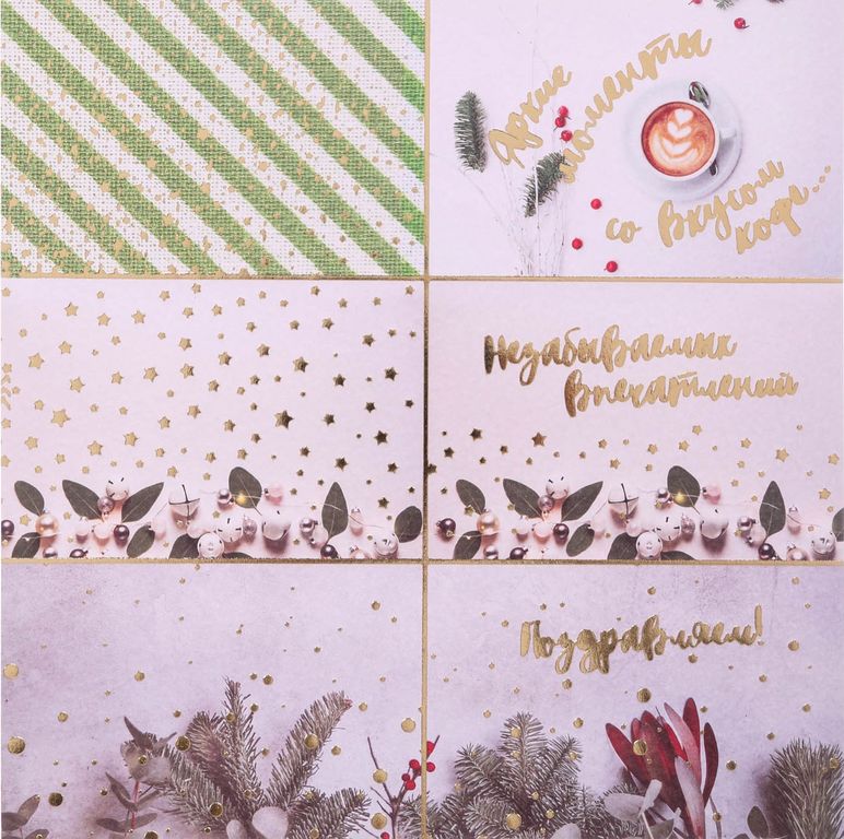 количество: 10 односторонних листов с золотым фольгированием (10 дизайнов), 3 листа с карточками, 1 лист-календарь